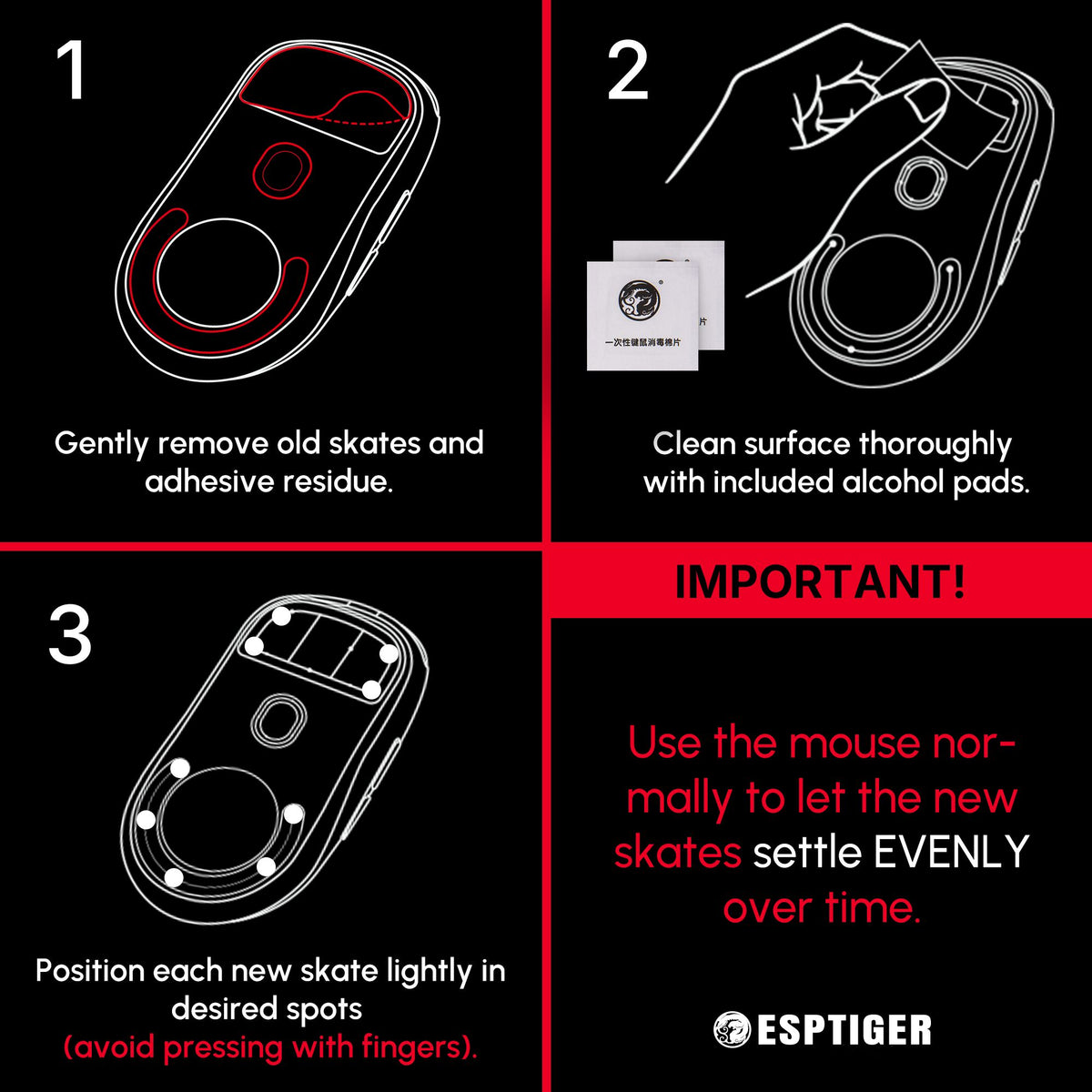 ESPTIGER Custom Bloody Red - Universal DIY Dot Mouse Skates