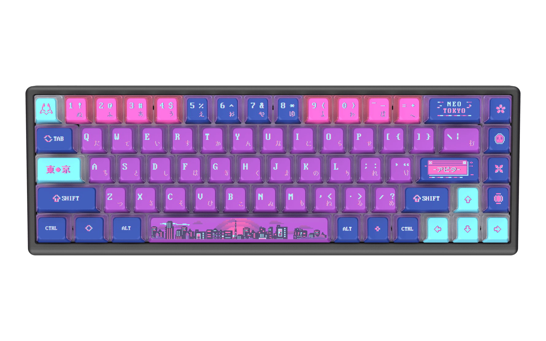Discover the ultimate gaming innovation with Arbiter Studio. Our keyboards feature Hall Effect Magnetic Switches and Rapid Trigger technology. This special edition Polar 65 keyboard comes with exclusive next gen Dual-Rail Fuji Switches, crafted for peak performance and buttery typing sound. New keycap design inspired by the streets of Tokyo and pixel art, merges together to create a new form of aesthetics...we call it NEO TOKYO.